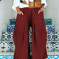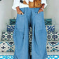 Casual Plain Large Pockets Irregular Wide Leg Pants