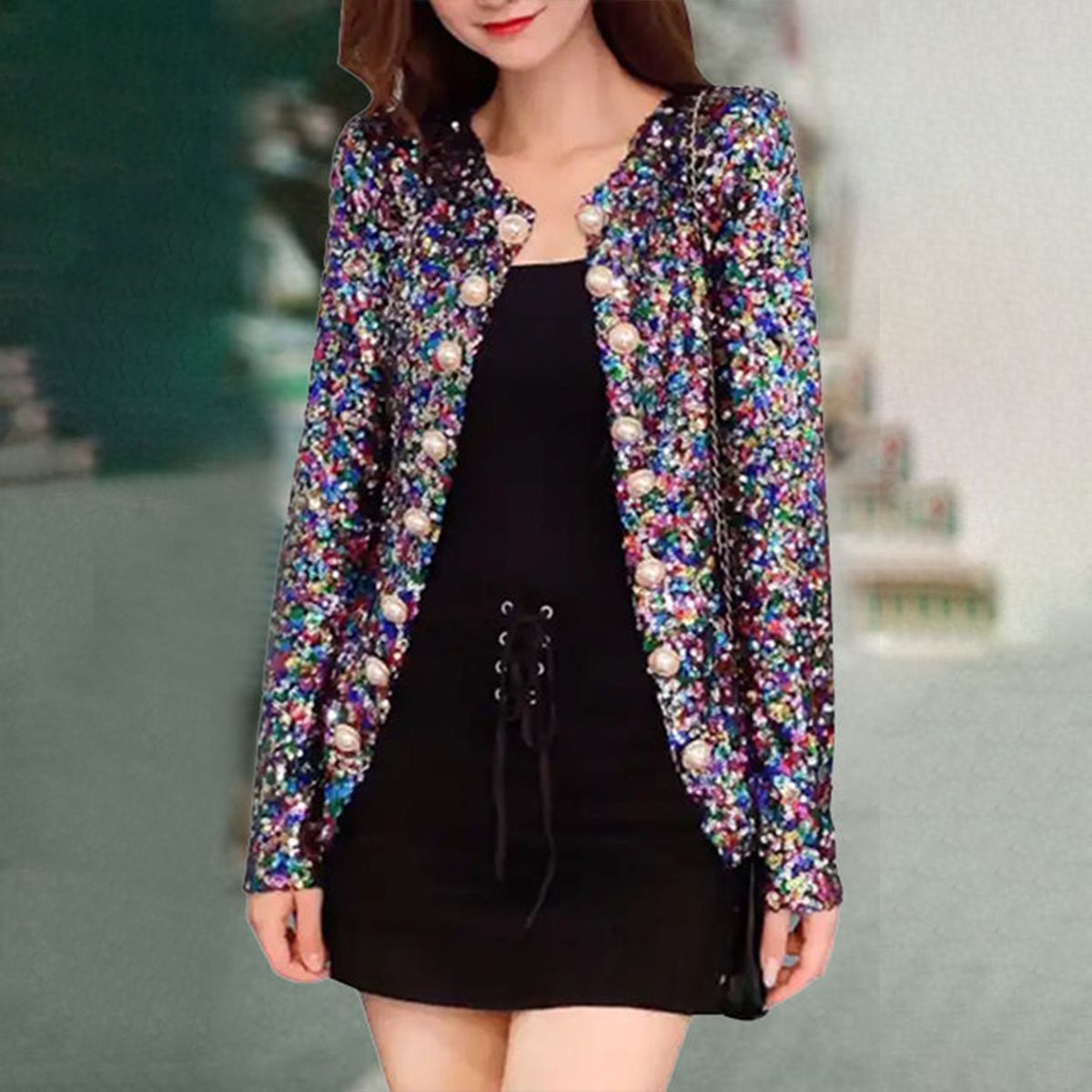 This stylish outerwear features a chic and flattering long sleeve design with a vibrant multicolor pattern. Made with high-quality materials, it offers comfort and versatility for any occasion. Elevate your wardrobe with this must-have piece that combines fashion and practicality.