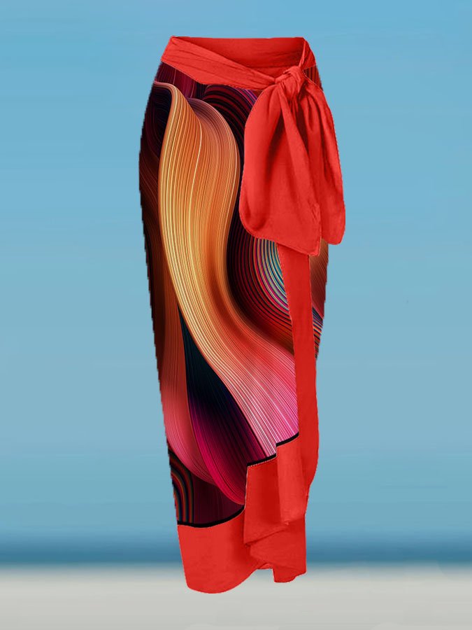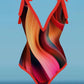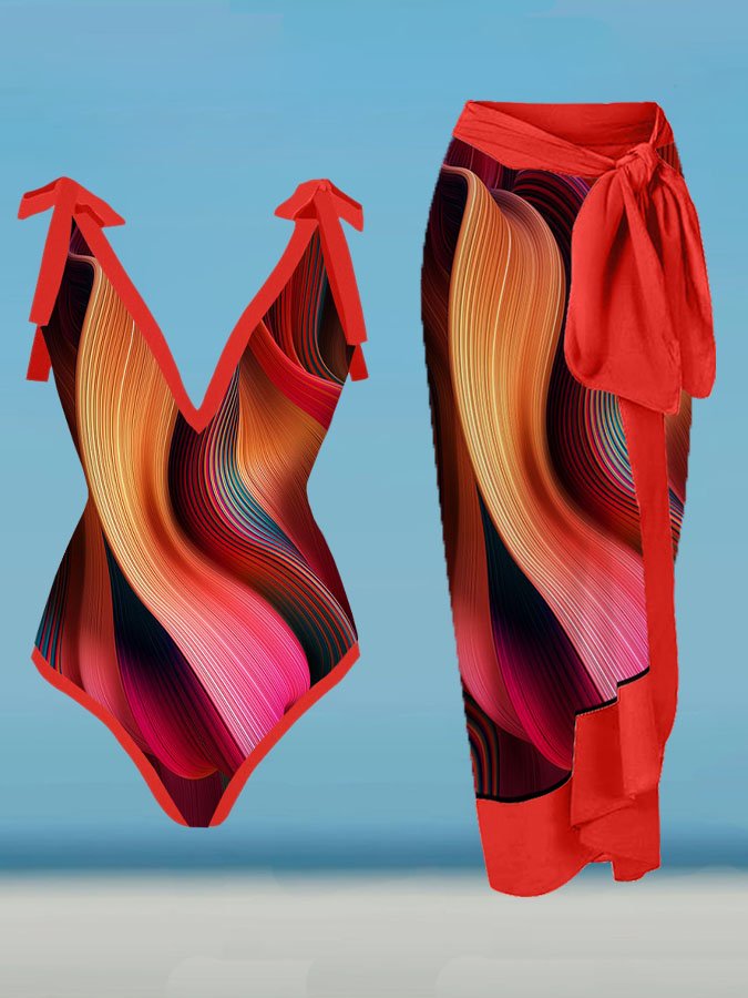 V-Neck Colorful Texture Art Print One-Piece Swimsuit Set