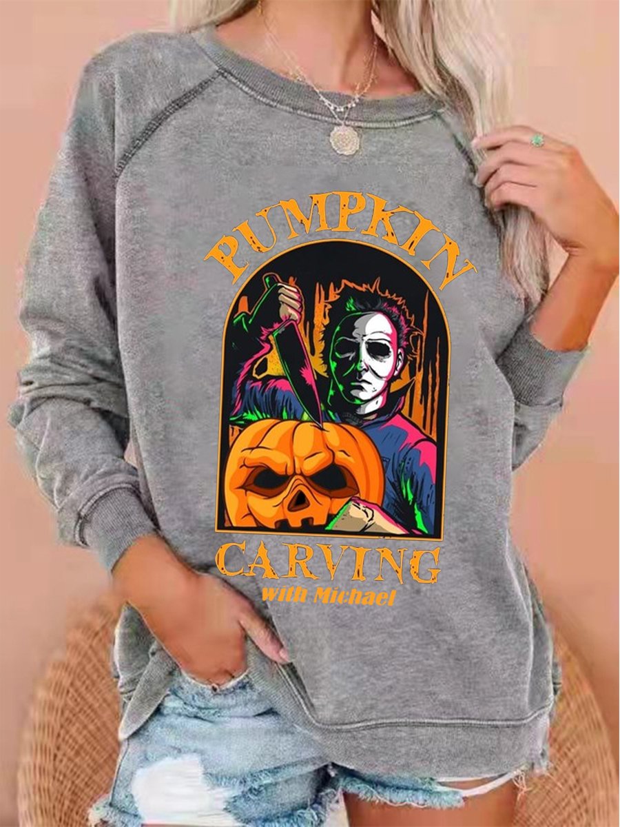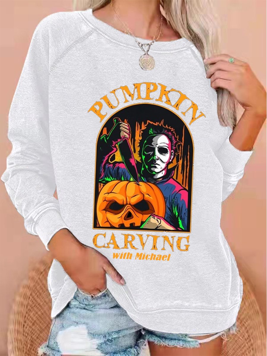 Women's Halloween Pumpkin Carving With Michael Print Top