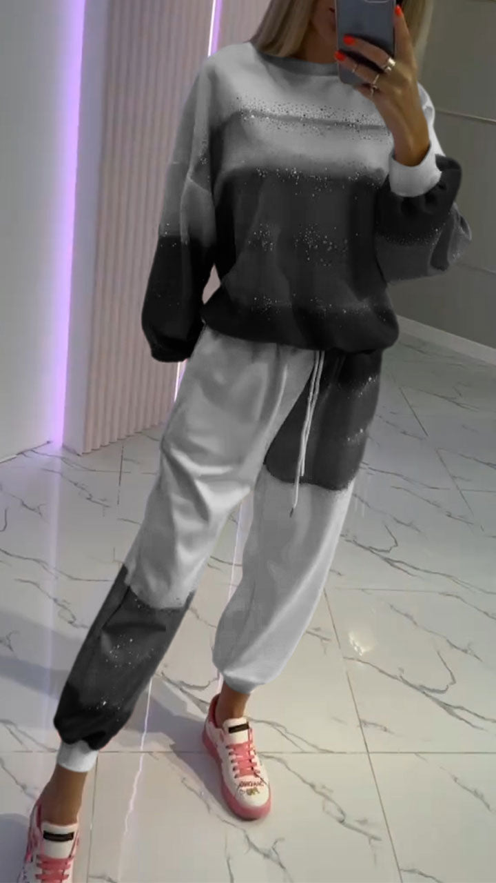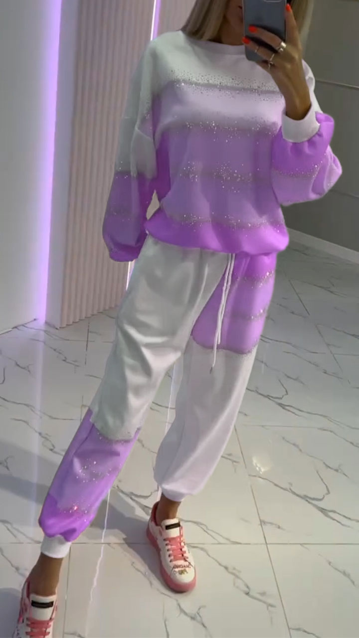 Women's Round Neck Contrast Color Hot Diamond Fashion Suit