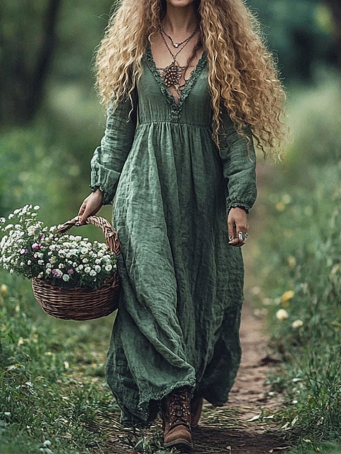 Women's Solid Color Casual V Neck Dress