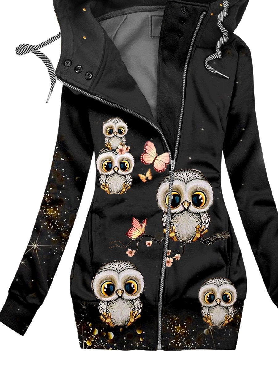 Women's Winter Owl Print Casual Track Jacket